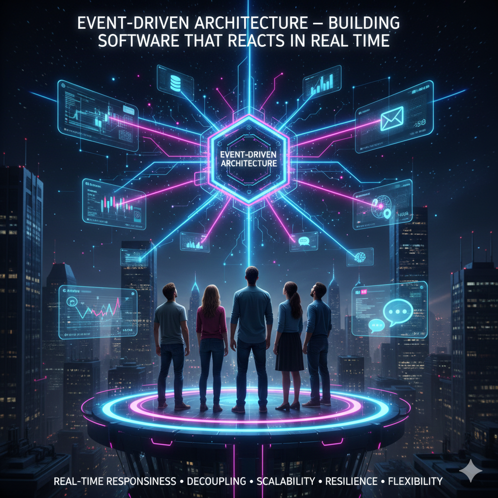 Modern digital applications are no longer designed to wait — they are built to respond instantly. Event-Driven Architecture (EDA) enables software systems to react in real time to user actions, data changes, and system events, making applications faster, smarter, and more scalable.